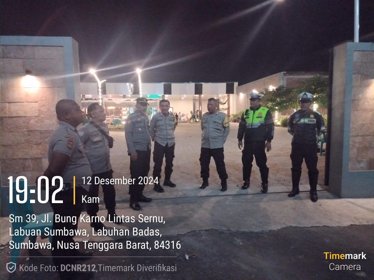 Sumbawa Besar–NTB, Personel gabungan dari Polres Sumbawa dan Polsek Sumbawa melaksanakan kegiatan pengamanan ibadah jemaat Gereja Pantai Kosta di Indonesia (GPDI) Sumbawa Besar. Pengamanan dilaksanakan di Aula LA Grande Sumbawa yang terletak di Jalan Kerangka Baja No. 12, Kelurahan Brang Bara, Kecamatan Sumbawa, pada Kamis, 12 Desember 2024.