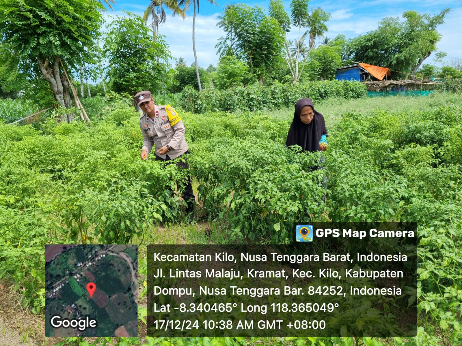 Dompu, Selasa (17/12/2024) – Bhabinkamtibmas Polsek Kilo, Aipda M. Nursalam, melaksanakan kegiatan pemantauan tanaman cabe milik Ibu Fatimah di Dusun Enca, Desa Kramat, Kecamatan Kilo, Kabupaten Dompu. Kegiatan ini dilakukan dalam rangka mendukung Program Ketahanan Pangan Nasional menuju Indonesia Emas 2024.