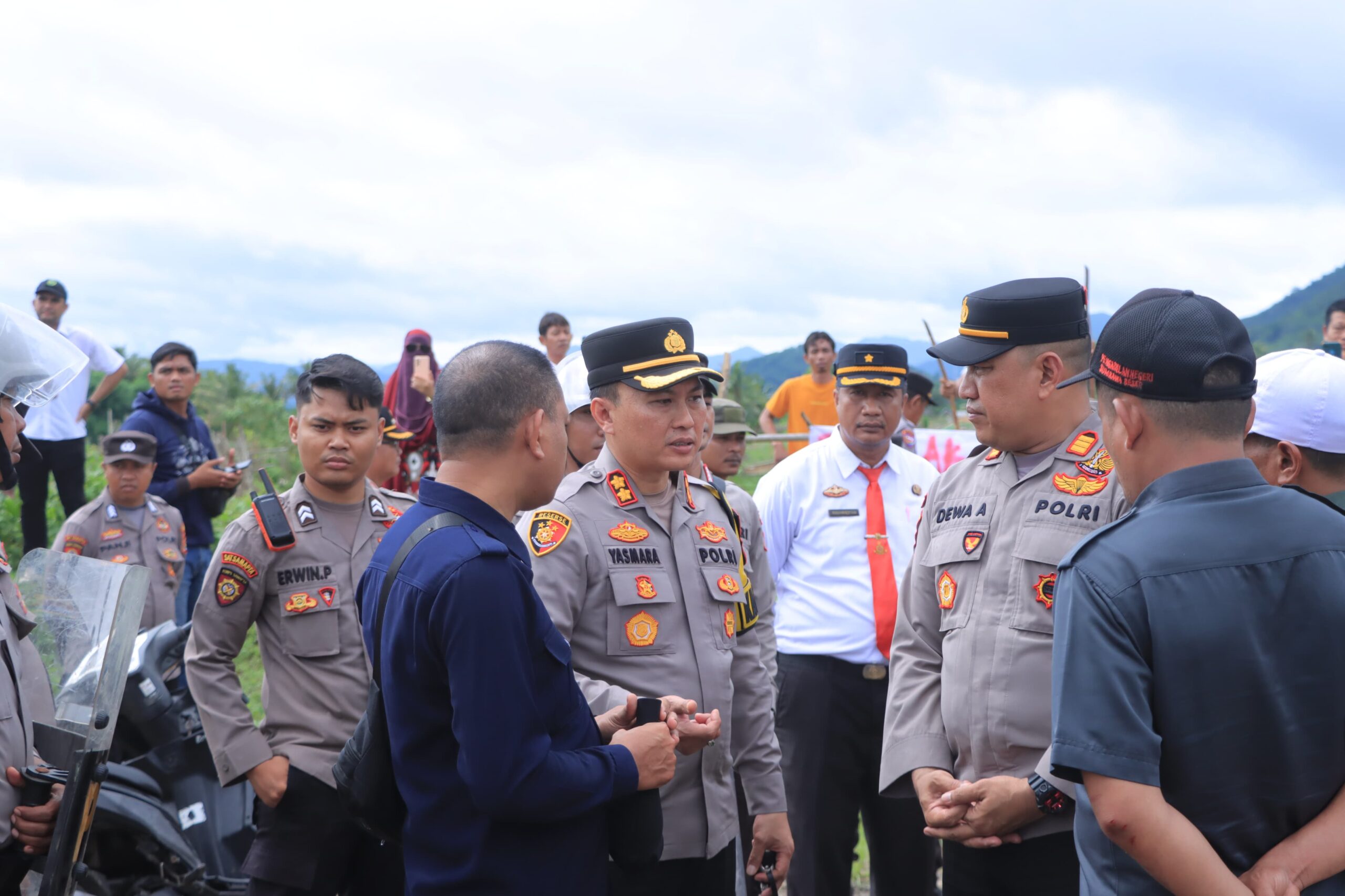 Sumbawa Barat – Kapolres Sumbawa Barat, AKBP Yasmara Harahap, S.I.K., turun langsung di tengah-tengah personel yang melaksanakan pengamanan eksekusi lahan milik warga yang dibebaskan untuk jalan umum (ruas jalan Senayan-Lamusung) Sumbawa Barat, Rabu (18/12/2024).
