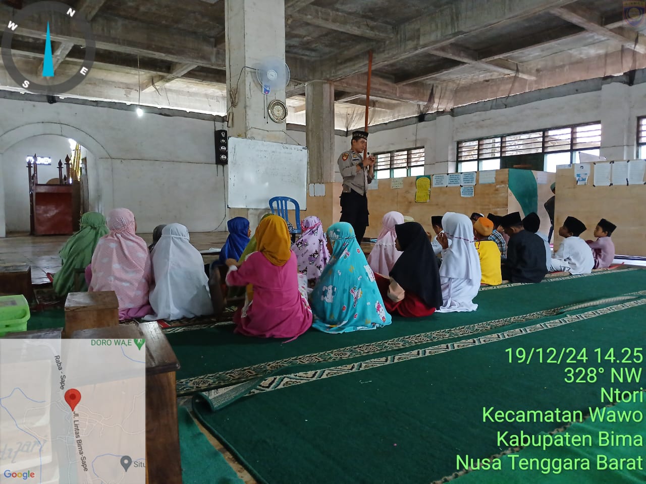 Kota Bima, NTB (20 Desember 2024) – Wujud Polri humanis dan pengabdian tanpa batas terlihat nyata dalam dedikasi Aipda Jorahman, Bhabinkamtibmas Desa Ntori, Kecamatan Wawo, Kabupaten Bima. Dalam kesehariannya, Aipda Jorahman tidak hanya bertugas menjaga keamanan dan ketertiban, tetapi juga memberikan kontribusi besar dalam bidang pendidikan agama bagi anak-anak di desa binaannya.