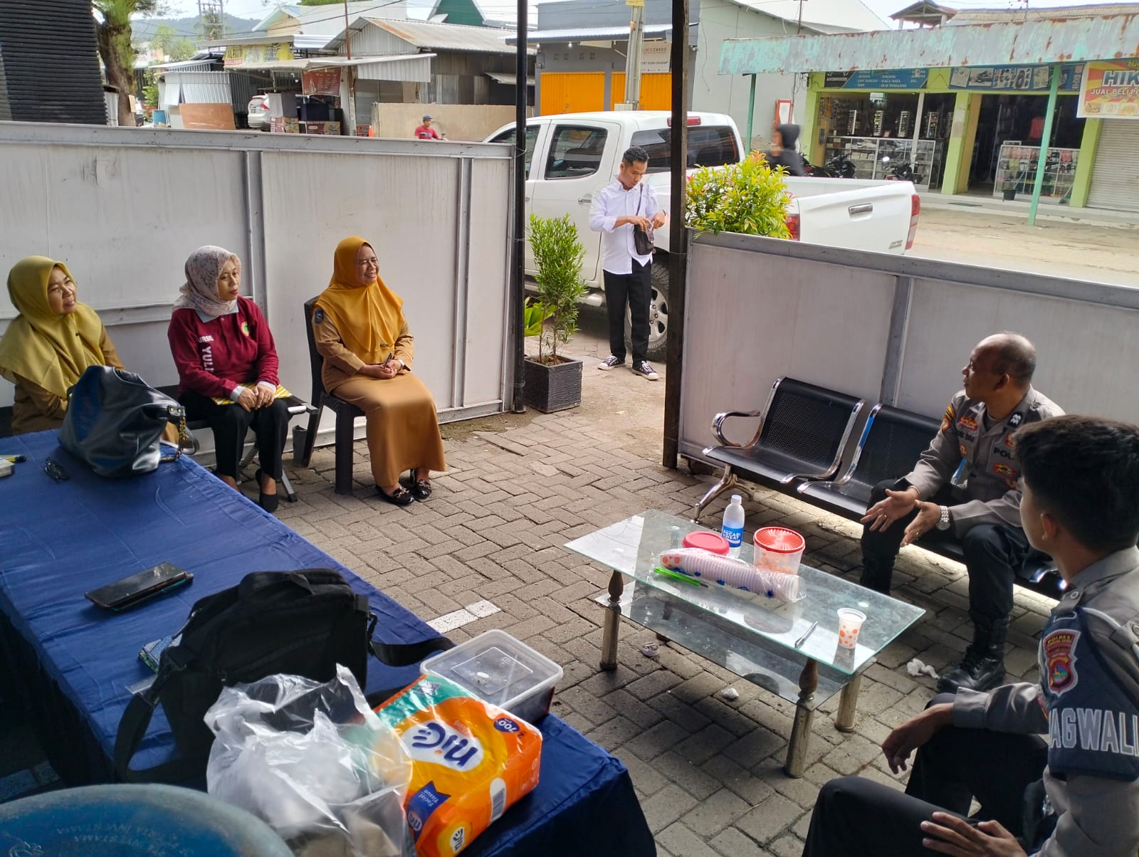 Sumbawa Barat – Pada hari Senin, 23 Desember 2024, pukul 16.00 WITA, anggota Ops Lilin Rinjani 2024 yang sedang bertugas di Pos Pengamanan (Pospam) Maluk menerima kunjungan dari Dinas Kesehatan Kabupaten Sumbawa Barat. Kunjungan ini dipimpin oleh Kepala Bidang BPSDM Dinas Kesehatan, Hj. Wildatun, bersama Kasi BPSDM, Yuria Nirmala, yang didampingi oleh petugas Puskesmas Maluk.