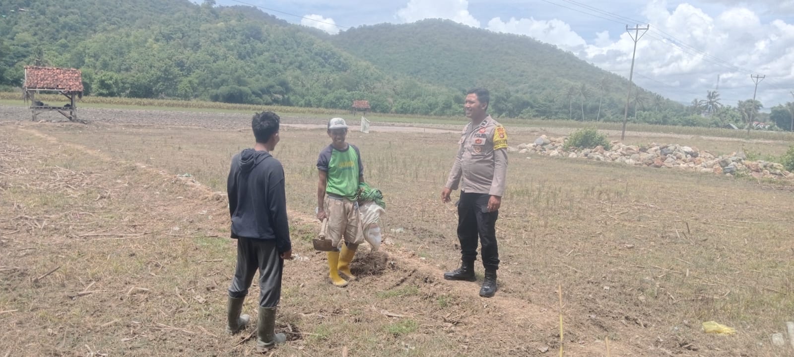 Dalam rangka mendukung Program Ketahanan Pangan Nasional Menuju Indonesia Emas 2045, Bhabinkamtibmas Desa Tembalae, Aipda Muhammad Kadafit, SH, melaksanakan pengecekan dan pemantauan kegiatan penaburan bibit padi di So Na’e, Dusun Rasabou, Desa Tembalae, Kecamatan Pajo, Kabupaten Dompu, Senin (23/12).