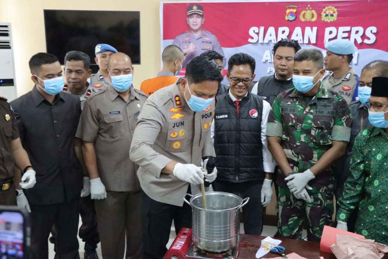 Kemudian pengungkapan kasus narkotika lanjut kapolres, perbandingan antara tahun 2023 dengan 2024 meningkat dari 73 kasus, menjadi 87 kasus dengan tersangka 99 orang menjadi 126 orang. Dari total kasus tersebut di tahun 2024, 63 kasus P21, dan restorative justice (RJ) 11 kasus.