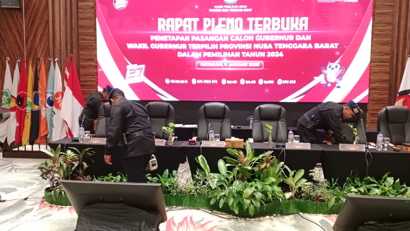 Kegiatan sterilisasi dipimpin langsung oleh Pasi Ops Detasemen Gegana Sat Brimob Polda NTB, AKP I Putu Wirawan, dengan melibatkan sejumlah personel terlatih. Dalam kegiatan tersebut, Tim Penjinak Bom (Jibom) dan Tim Kimia, Biologi, dan Radioaktif (KBR) melakukan pemeriksaan menyeluruh di seluruh area hotel, termasuk ballroom yang menjadi lokasi utama acara penetapan pasangan calon.