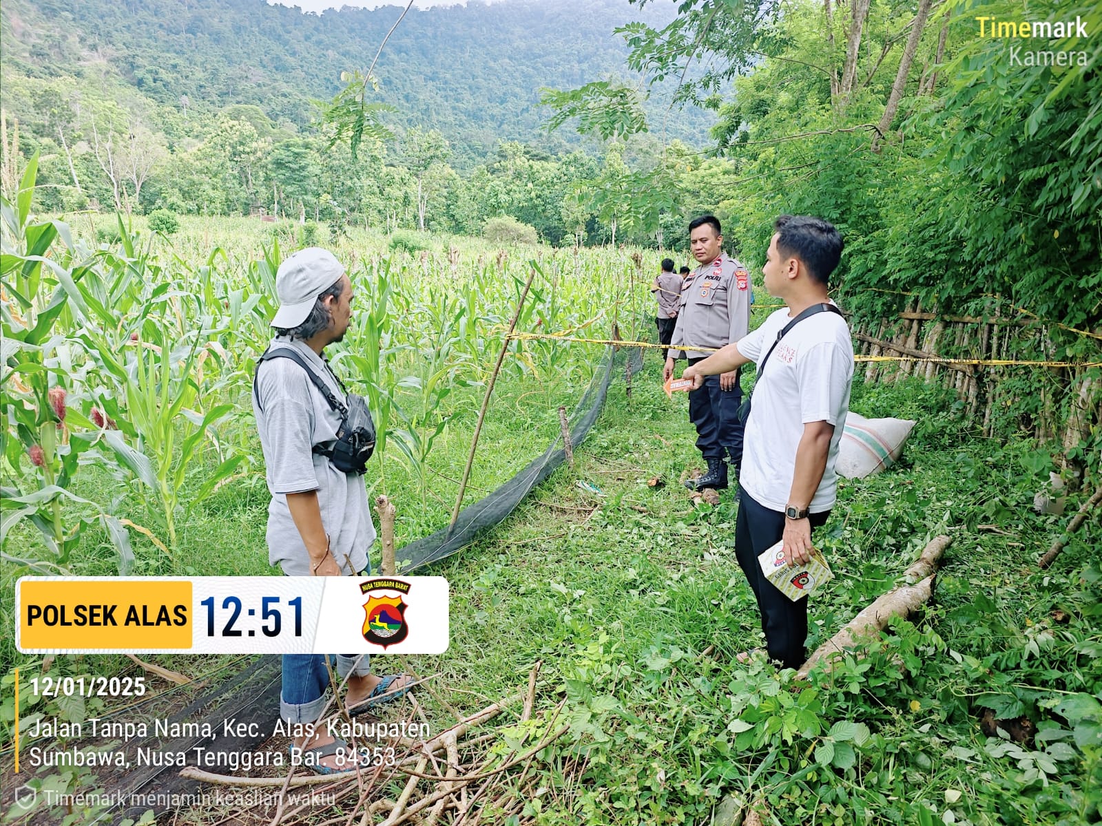 Sumbawa Besar-NTB, Kepolisian Sektor (Polsek) Alas, Polres Sumbawa, melaksanakan olah tempat kejadian perkara (TKP) terkait penemuan mayat seorang lelaki muda berinisial G (17) di area persawahan, tepatnya di Dusun Telangit, Desa Juranalas, Kecamatan Alas, pada Hari Minggu (12/01) pukul 09.45 WITA.