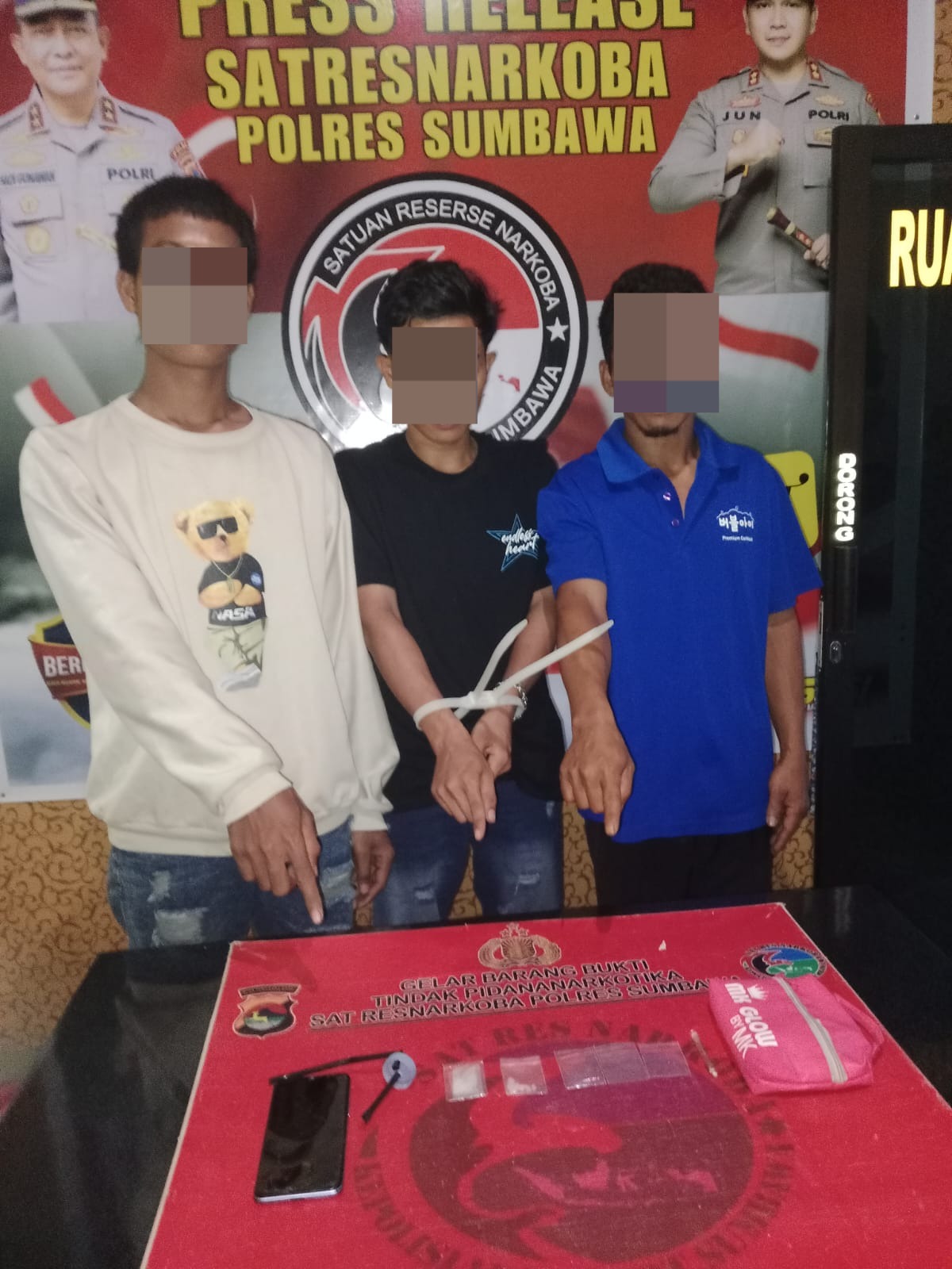 Sumbawa Besar-NTB, Polres Sumbawa melalui Tim Opsnal Satresnarkoba berhasil mengamankan 3 orang pria terkait tindak pidana penyalahgunaan narkotika jenis sabu.