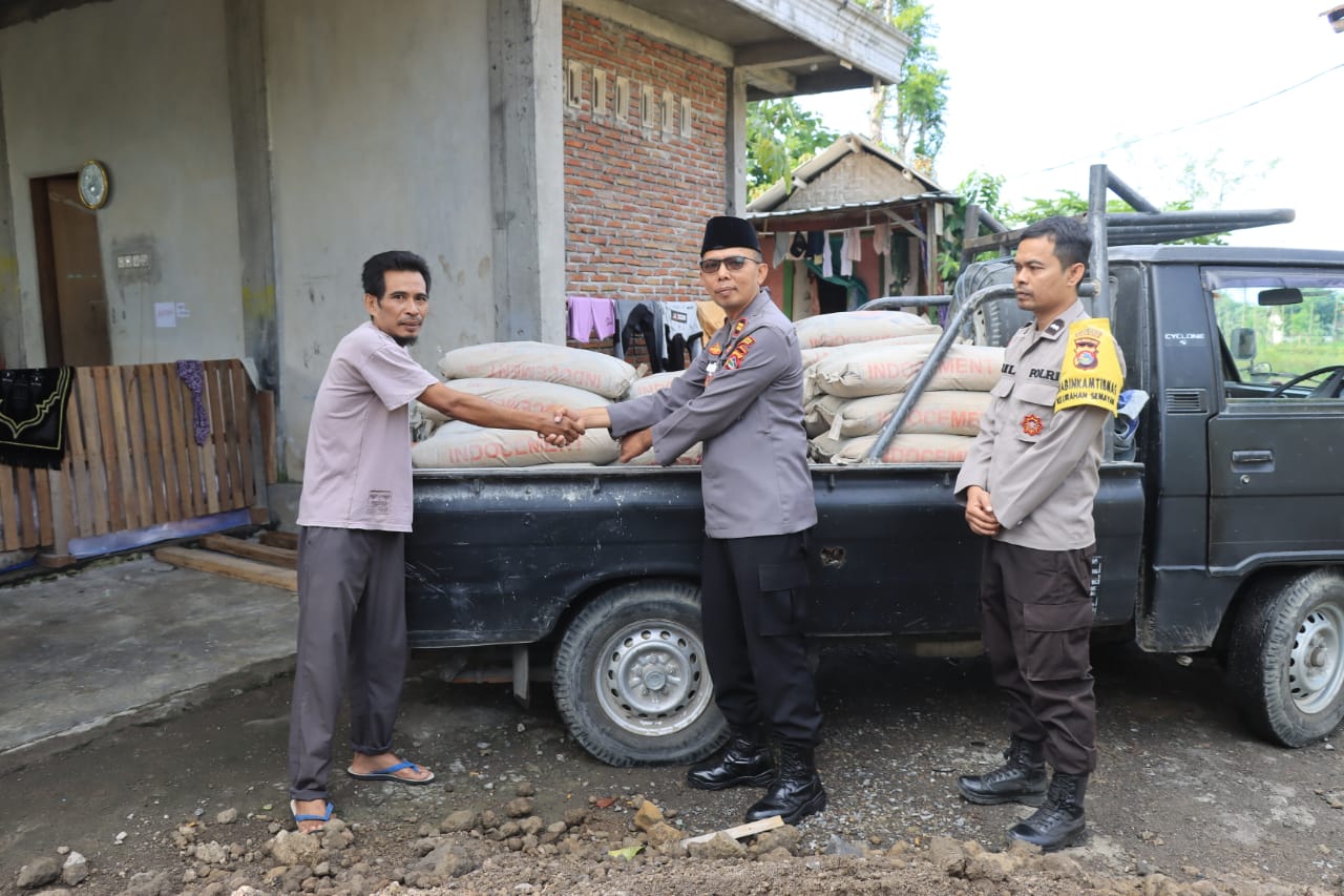 Lombok Tengah, (NTB) – Kapolres Lombok Tengah AKBP Iwan Hidayat, SIK menunjukkan kepedulian terhadap masyarakat dengan menyalurkan 50 sak semen untuk pembangunan Masjid Ar-Rahman di Kelurahan Semayan Kecamatan Praya.