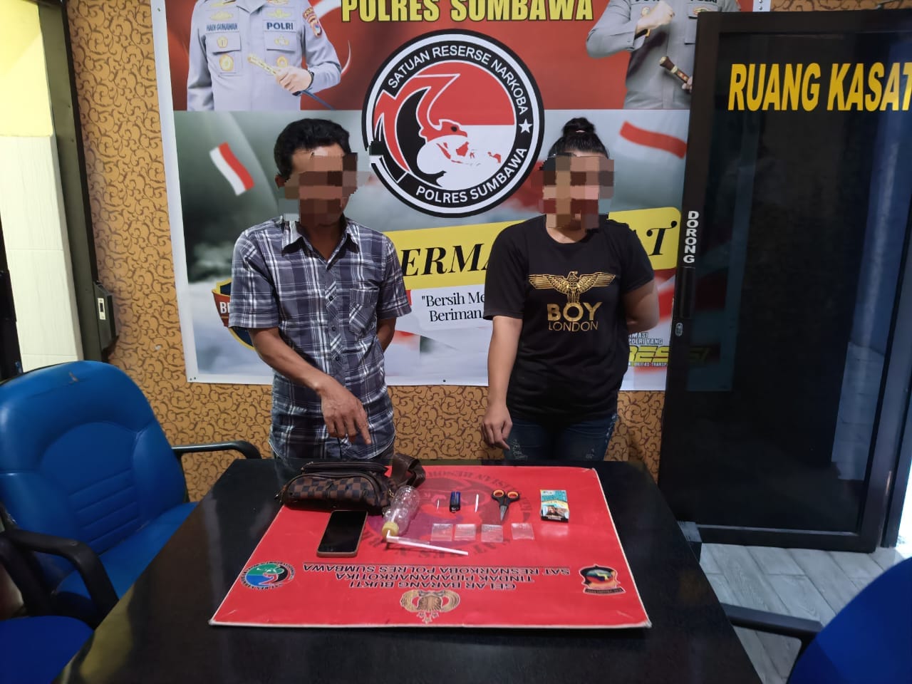 Seorang pria berinisial HW Alias I (42) asal Sumbawa dan seorang wanita berinisial NA Alias E (36) asal Bandung diamankan di sebuah Homestay yang berlokasi di Jalan lintas Kerato-Olat rarang Kelurahan Lempeh Kecamatan Sumbawa pada Hari Senin 27 Januari 2025 sekitar pukul 19.30 Wita.
