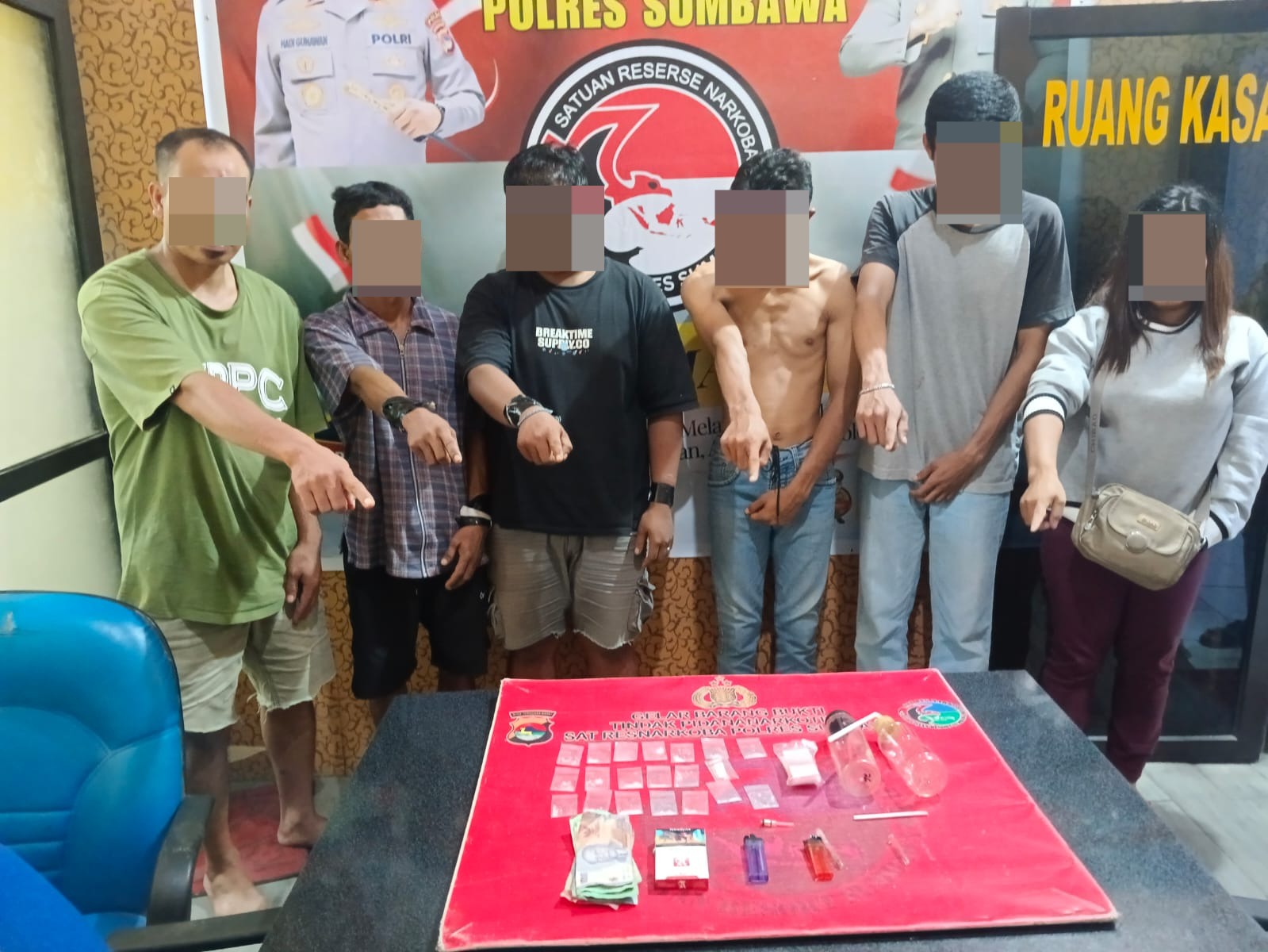 Sumbawa Besar–NTB, Keberhasilan besar dalam pengungkapan tindak pidana penyalahgunaan narkotika jenis sabu berhasil diraih oleh Satresnarkoba Polres Sumbawa. Dalam pengungkapan ini, enam orang terduga pelaku diamankan, yang terdiri dari lima pria dan satu wanita.