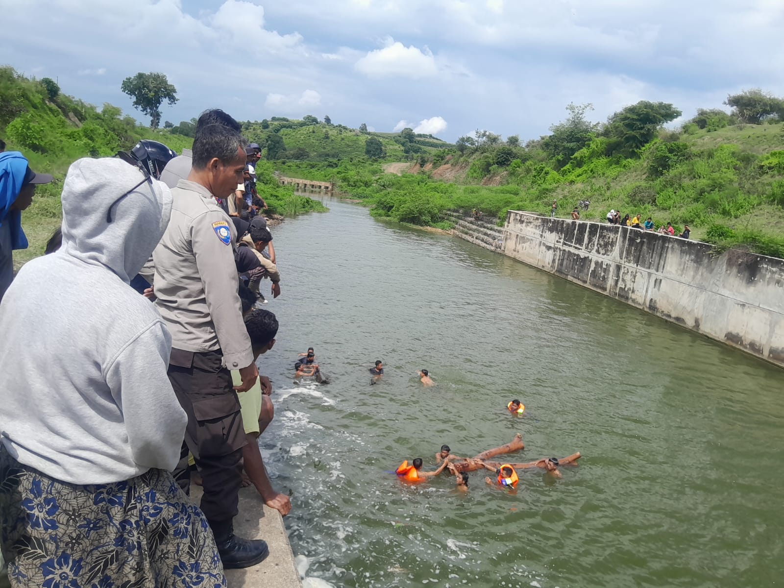 “Kedua temannya sudah mencoba membantu korban dengan memberikan sebatang balok kayu, namun karena sudah tidak berdaya, korban tenggelam dan menghilang” ucap Kapolsek.