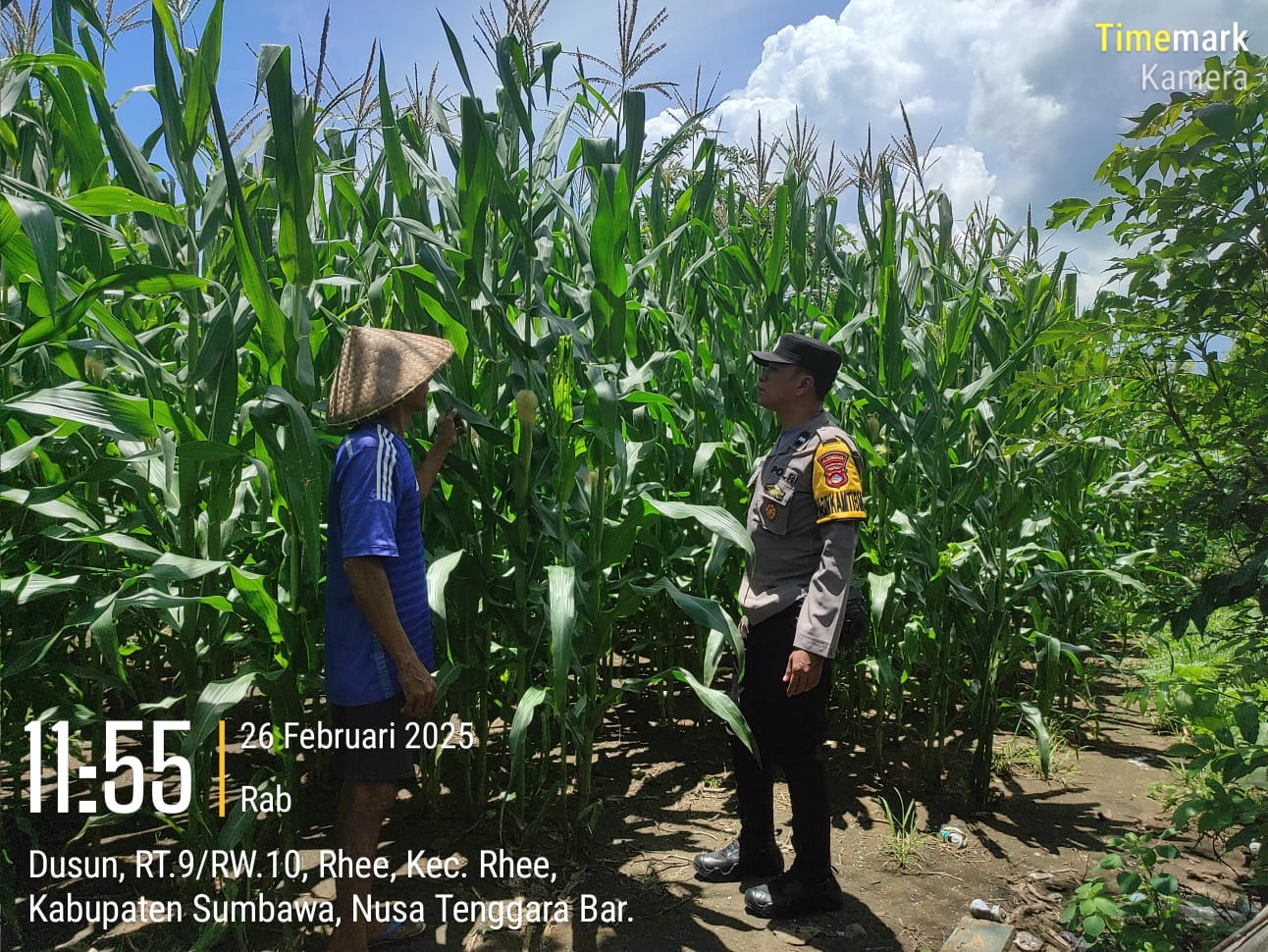Sumbawa – Sebagai bentuk kepedulian terhadap ketahanan pangan di wilayah binaannya, Bhabinkamtibmas Desa Rhee Loka, Polsek Rhee, Polres Sumbawa, Aipda I Wayan Budi Gunawan, melakukan pengecekan lahan jagung milik warga di Dusun Karang Luar, Desa Rhee Loka, Kecamatan Rhee, Rabu (26/02/25) pagi.