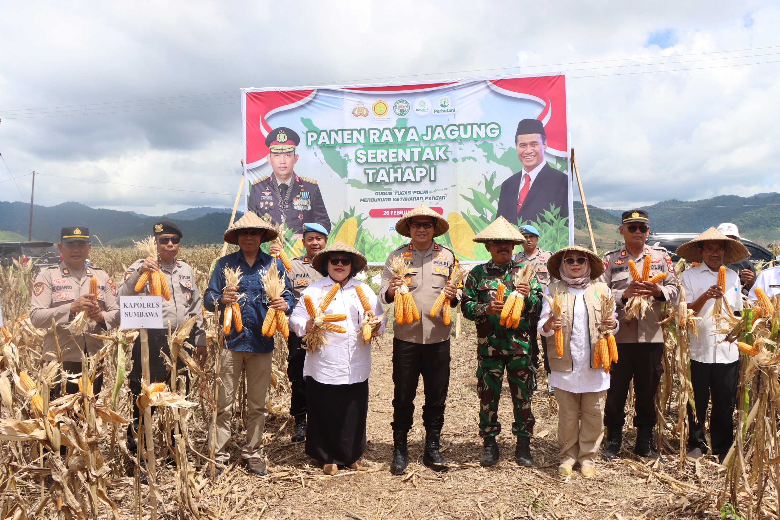 Sumbawa Besar-NTB, Polres Sumbawa menggelar kegiatan Panen Raya Jagung Serentak Tahap I yang diselenggarakan di wilayah perkebunan jagung di Kecamatan Lunyuk, Rabu (26/02/25) pagi.