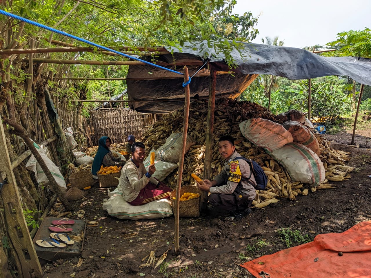 Bhabinkamtibmas juga mendengar keluhan dari masyarakat petani jagung tentang keadaan cuaca dengan curah hujan tinggi sehingga lama kering, dan petani akan menyimpan jagung hasil panennya ke gudang sambil menunggu pengeringan secara alami.