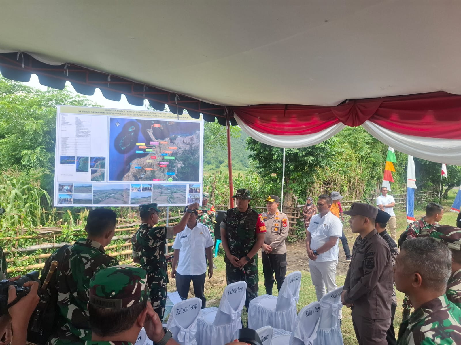 Sumbawa Barat, NTB – Kapolres Sumbawa Barat, AKBP Yasmara Harahap, S.I.K., menghadiri peninjauan lokasi pembangunan Batalyon Teritorial dalam rangka Kunjungan Kerja Pangdam IX/Udayana, Mayjen TNI Muhammad Zamroni, S.I.P., M.Si., di Desa Senayan, Kecamatan Poto Tano, Kabupaten Sumbawa Barat, Kamis (13/03/2025).