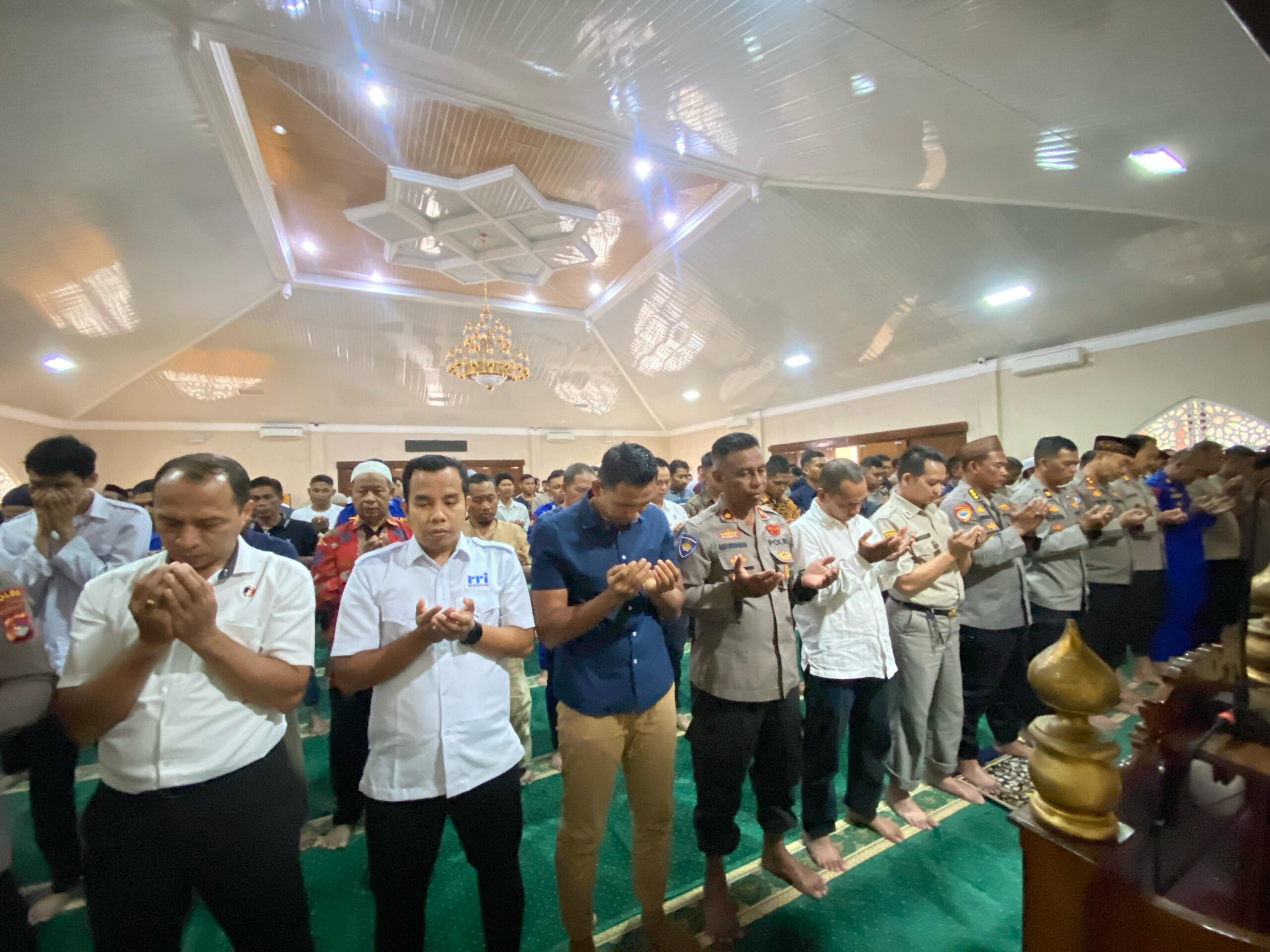 Mataram — Suasana haru menyelimuti jajaran Polda NTB saat melaksanakan salat gaib dan doa bersama untuk tiga personel Polri yang gugur dalam tugas di Polda Lampung. Kegiatan ini dilaksanakan sebagai bentuk penghormatan dan solidaritas dari keluarga besar Polri, sesuai imbauan Mabes Polri yang disampaikan melalui video conference bersama Kapolri, Selasa (18/3/2025).