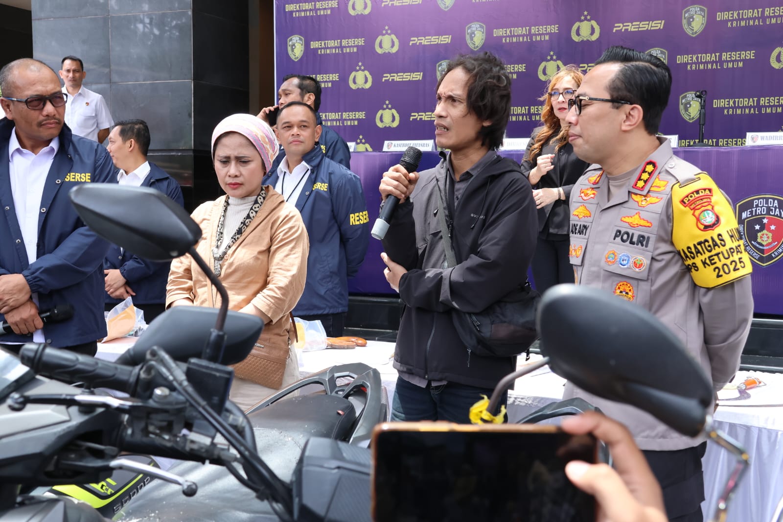 “Kami dari Ditreskrimum Polda Metro Jaya akan mengembalikan barang bukti yang berhasil disita oleh tim penyidik kepada para pemilik yang sah. Oleh karena itu dalam kesempatan yang baik ini kami serahkan secara simbolis kunci motornya kepada para pemilik,” Dirreskrimum, Senin (24/3/2025).
