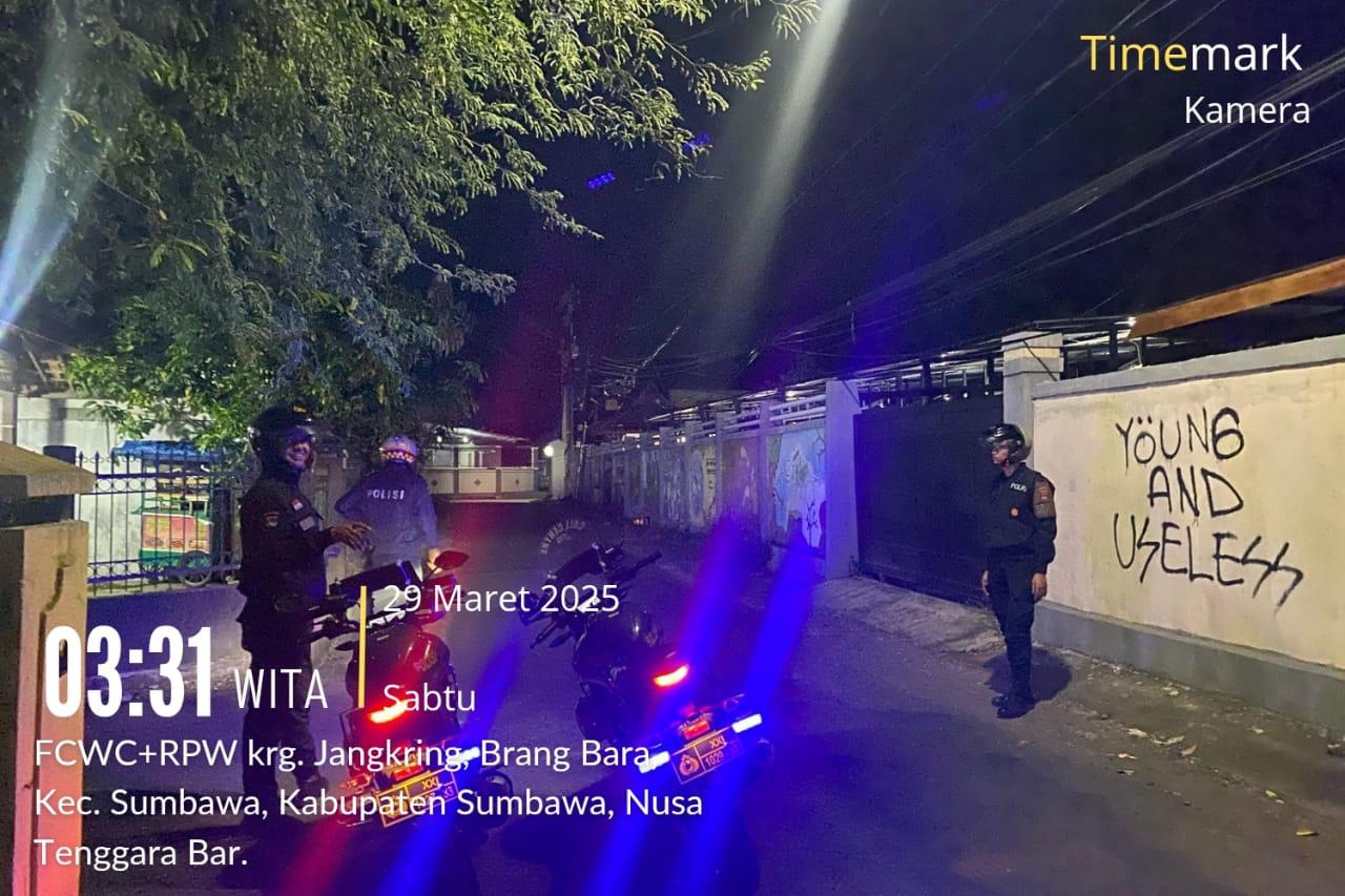 Sumbawa Besar–NTB, Personel Unit Patroli Samapta Polres Sumbawa melaksanakan patroli subuh menjelang sahur, dalam rangka menciptakan dan menjaga kondusivitas selama bulan suci Ramadhan, Sabtu (29/03/25).