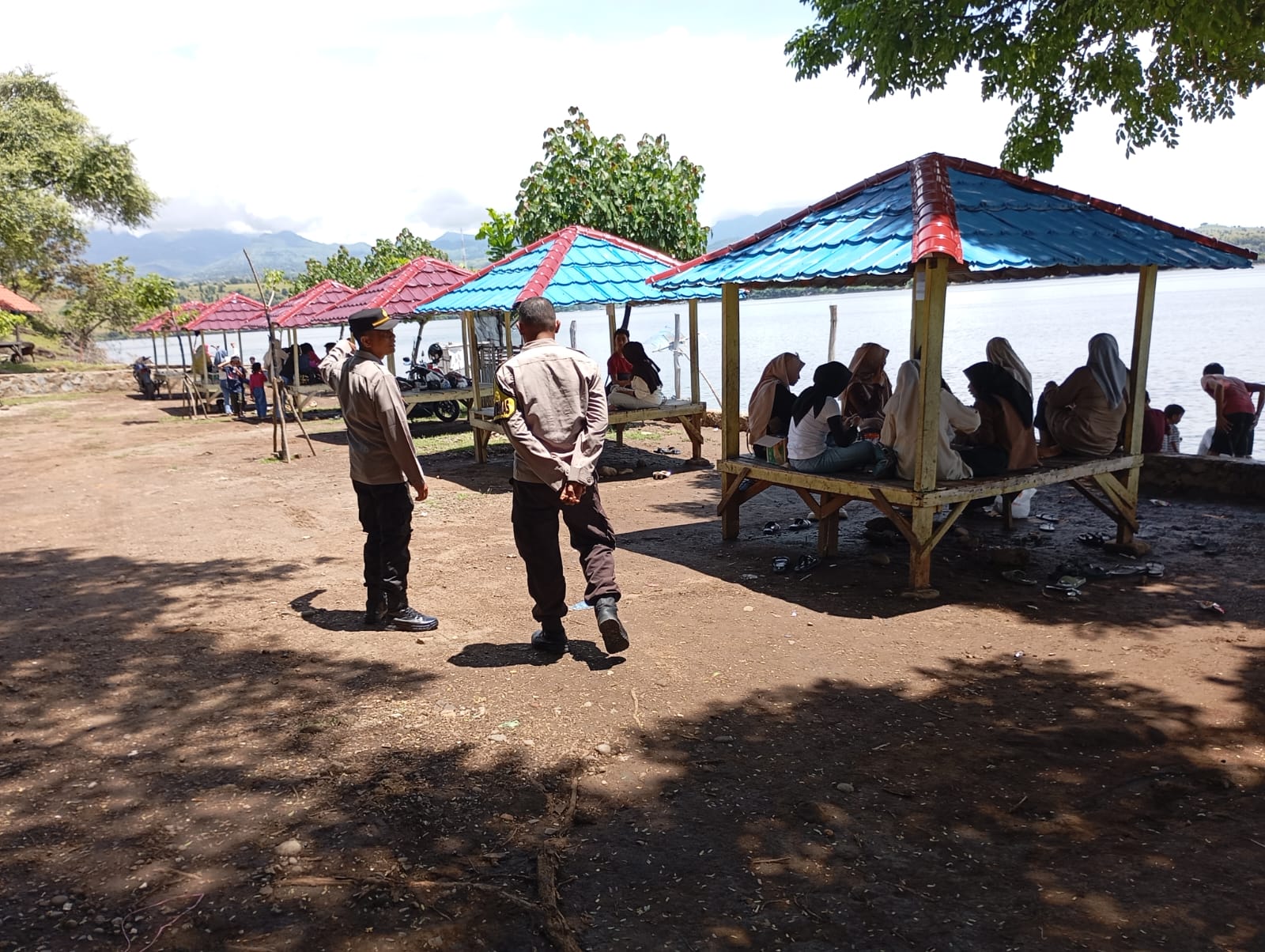 Selain pengamanan, personel juga melakukan patroli di sekitar area wisata untuk mengantisipasi potensi gangguan keamanan serta memberikan imbauan kepada para pengunjung agar tetap menjaga ketertiban dan keselamatan selama berada di lokasi.