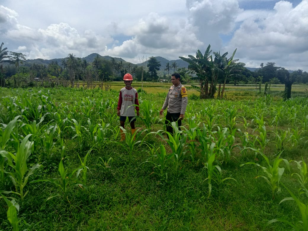 Dalam rangka mendukung Program Ketahanan Pangan Nasional Menuju Indonesia Emas 2025, pada hari Sabtu, 5 April 2025 pukul 13.00 Wita, Bhabinkamtibmas Kelurahan Kandai I Polsek Dompu, Aipda Khairil Muslim, melaksanakan kegiatan pemantauan lahan jagung milik warga binaannya, Bapak Hasan, di Lingkungan Kandai I, Kecamatan Dompu, Kabupaten Dompu.