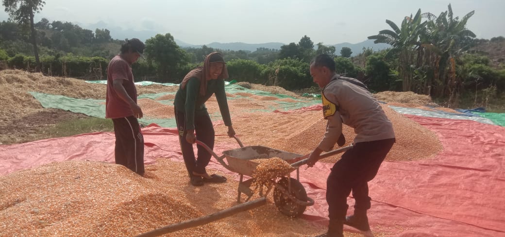 Pada Sabtu (12/4/2025), AIPTU Purwanto selaku Bhabinkamtibmas setempat melakukan pendampingan panen di lahan pertanian milik Muhammad Said, Ketua Kelompok Tani “Mada Lanco,” yang terletak di Dusun Kamudi. Lahan seluas 15.000 meter persegi tersebut menghasilkan panen jagung hibrida dengan estimasi mencapai ±10 ton.
