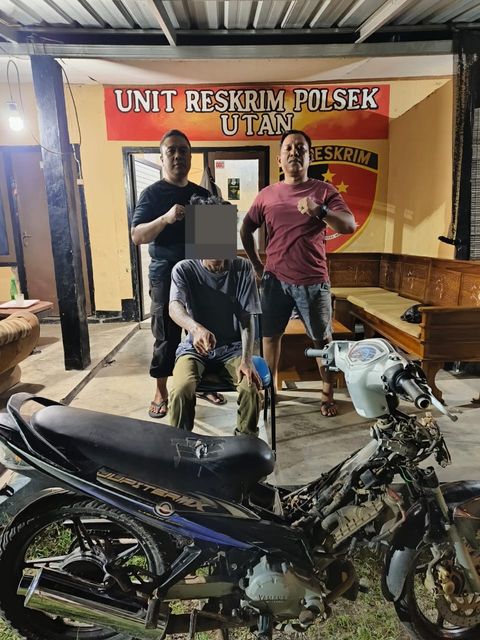 Seorang pria berinisial GR alias P berhasil diringkus dan diamankan oleh petugas Polsek Utan. Bersama pelaku, turut diamankan barang bukti berupa 1 unit sepeda motor Yamaha Jupiter MX 135 cc.