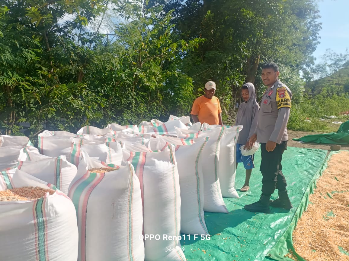 Dalam rangka mendukung Program Ketahanan Pangan Nasional Menuju Indonesia Emas 2024, Bhabinkamtibmas Desa Adu Polsek Hu’u, Brigadir Wahyudin, melaksanakan pemantauan terhadap aktivitas warga binaan yang sedang menjemur jagung, Rabu (16/04/2025).