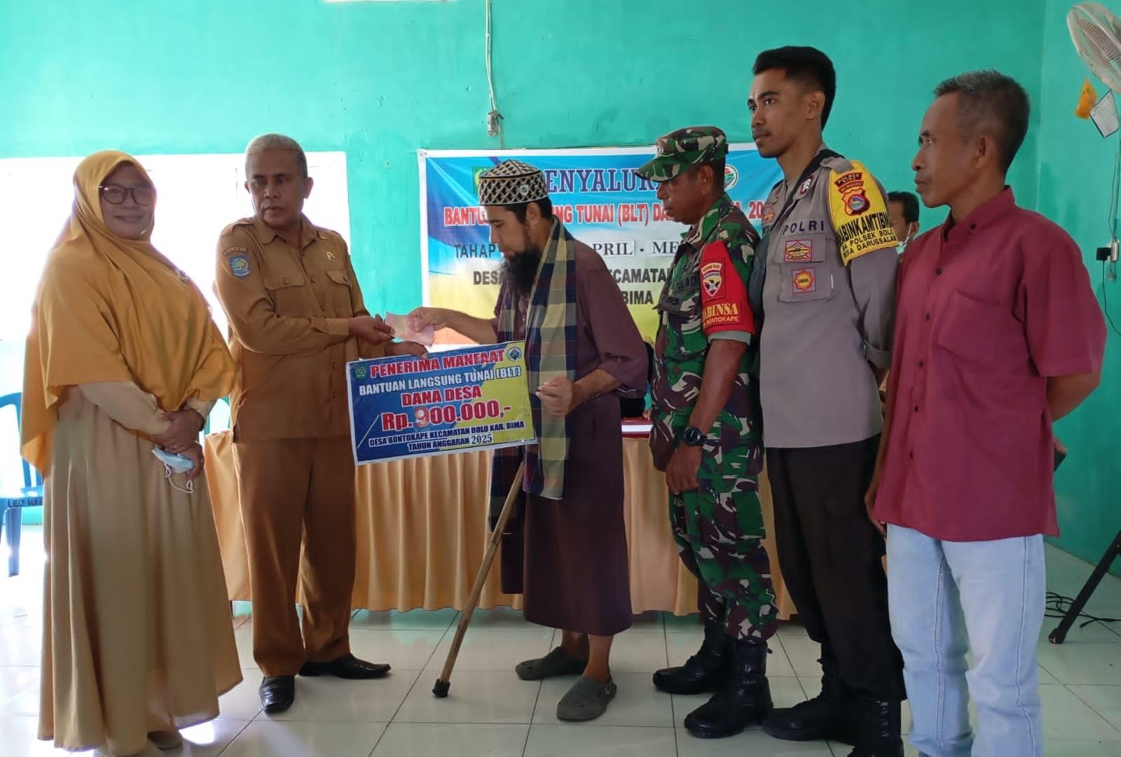 Bhabinkamtibmas Polsek Bolo Polres Bima Polda NTB Brigpol Alamsyah melaksanakan pengamanan penyaluran Bantuan langsung Tunai/ BLT.