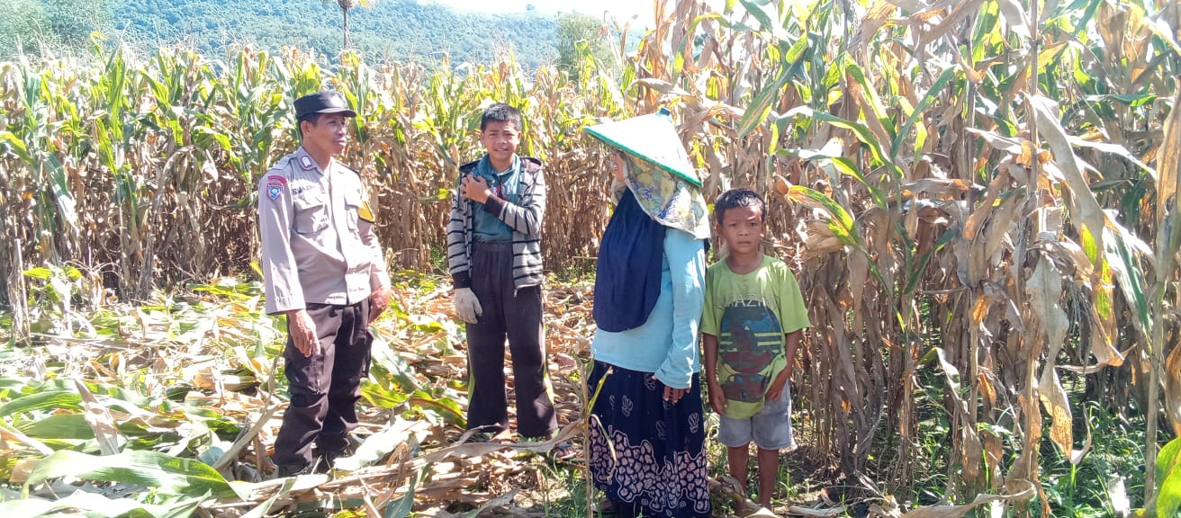 Bhabinkamtibmas Desa Madaprama Polsek Woja, BRIPKA Rijaidin, melaksanakan kegiatan pemantauan panen jagung milik warga binaan atas nama Sahril yang tergabung dalam kelompok tani Sori Manggonggi. Kegiatan berlangsung di Dusun Mada Oi Ua, Desa Madaprama, Kecamatan Woja, Kabupaten Dompu.