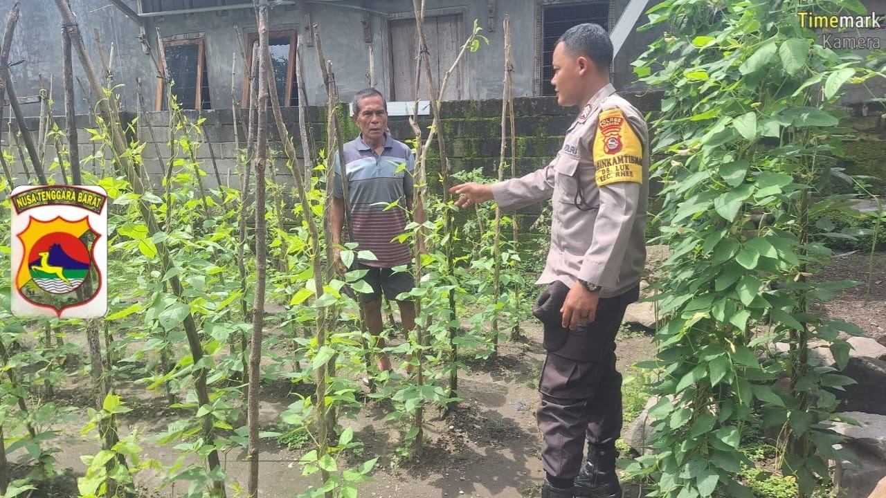 Sumbawa Besar–NTB, Dalam rangka program mendukung ketahanan pangan nasional, Bhabinkamtibmas Desa Luk Brigadir I Komang Widnyana sambangi rumah Bpk. Ramliana di Desa Luk, Kec. Rhee untuk memberi bantuan sekaligus motivasi terkait ketahanan pangan, Selasa 29 April 2025 pukul 11.20 Wita.