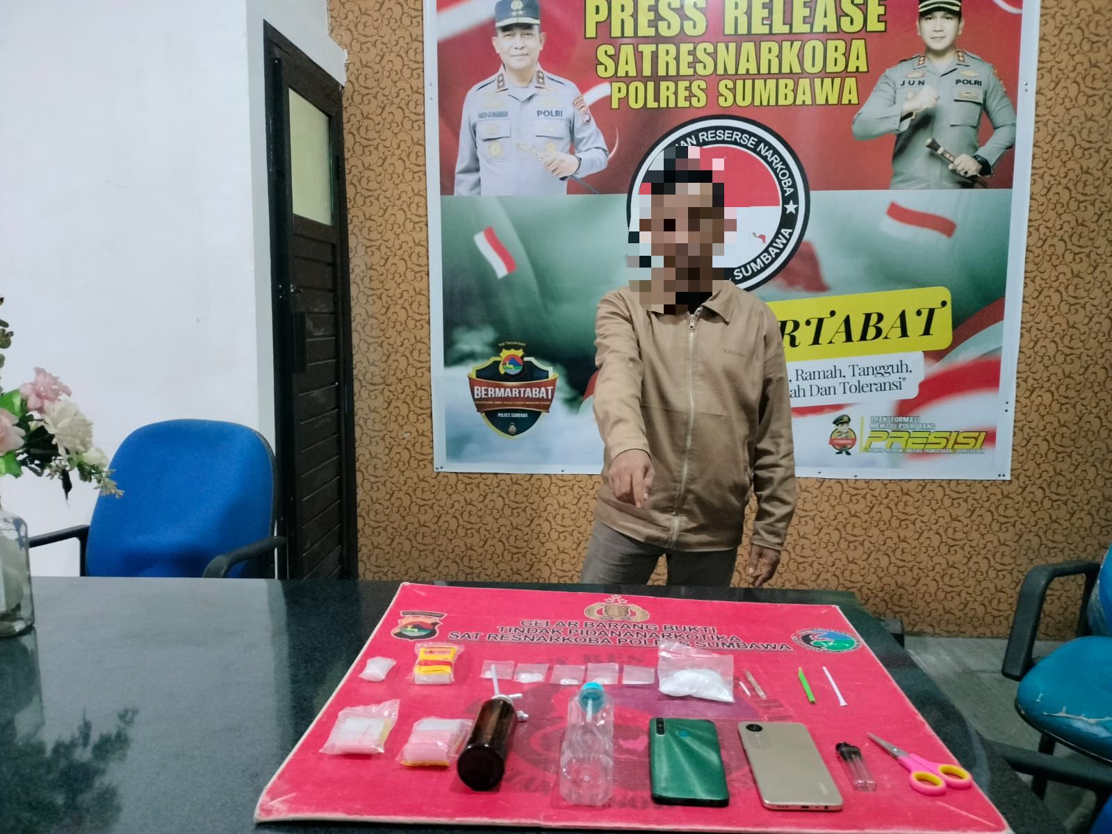 Kapolres Sumbawa AKBP Bagus Nyoman Gede Junaedi, S.H., S.I.K., M.A.P., melalui Kasat Narkoba AKP Tamrin, S. Sos., mengungkapkan bahwa penangkapan ini berawal dari informasi warga terkait adanya dugaan terhadap seorang pria di Desa Juranalas yang kerap edarkan narkotika.