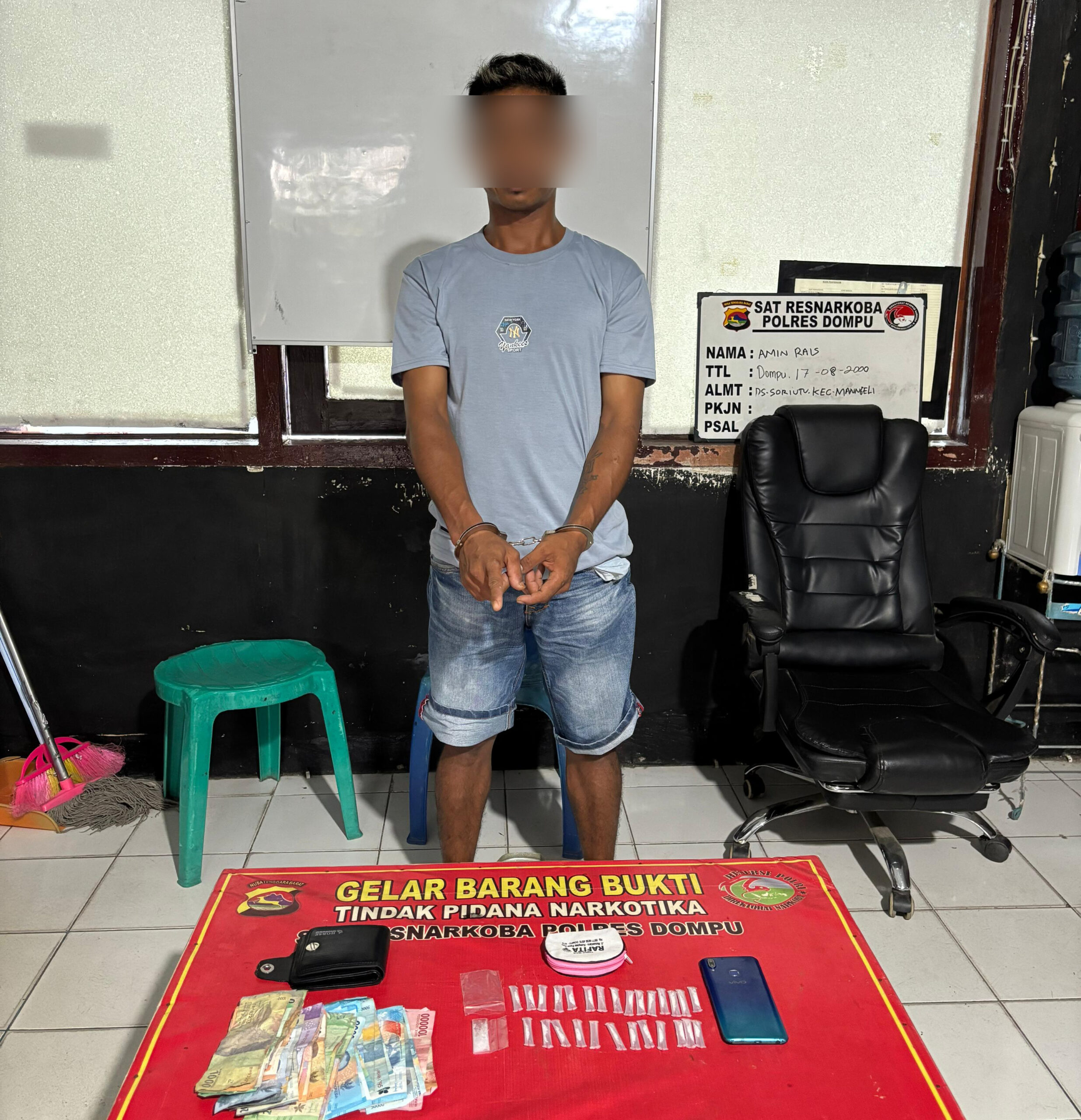 Tim Opsnal Satresnarkoba Polres Dompu berhasil mengungkap dugaan tindak pidana peredaran narkotika jenis sabu di wilayah Lingkungan Bali Barat, Kelurahan Bali, Kecamatan Dompu, Kabupaten Dompu. Seorang pria berinisial S (33 tahun) diamankan bersama puluhan paket sabu siap edar.