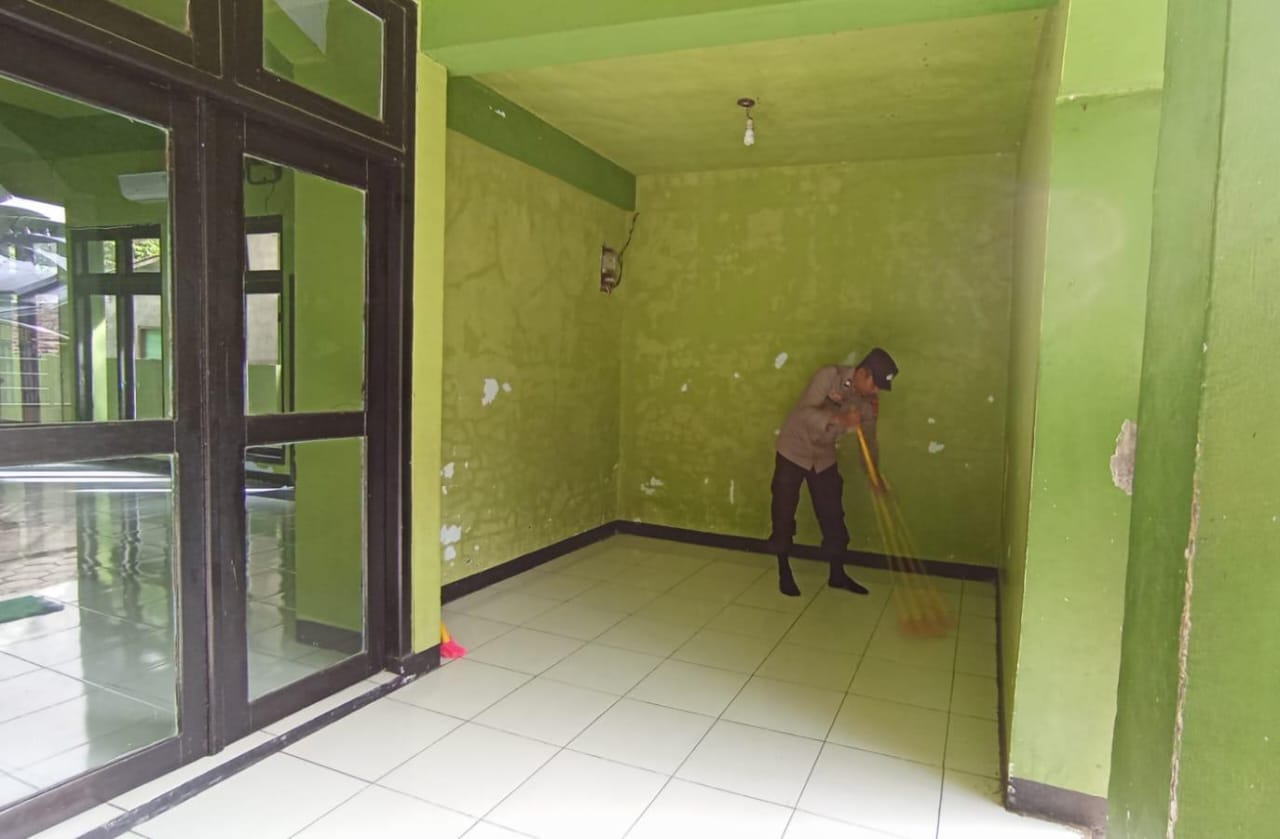 Dalam kegiatan itu terlihat kebersamaan antara polri dan masyarakat yang membersihkan mulai dari menyapu halaman, hingga sudut dan seluruh bagian Masjid.