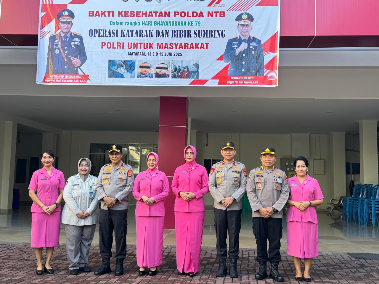 Untuk memberikan dukungan moril dan semangat kepada para pasien, Kapolda NTB Irjen Pol. Hadi Gunawan, S.I.K., bersama Ketua Bhayangkari Daerah NTB Ny. Santy Hadi Gunawan, turun langsung meninjau proses operasi. Mereka didampingi oleh jajaran Pejabat Utama Polda NTB dan pengurus Bhayangkari, sekaligus menyerahkan bantuan sosial kepada para penerima layanan kesehatan.