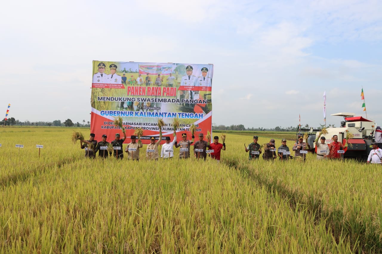 Panen raya ini berlangsung di atas lahan seluas 350 hektare dan turut dihadiri oleh Wakil Gubernur Kalteng H. Edy Pratowo, Bupati Kapuas, Kapolres Kapuas, serta unsur Forkopimda lainnya.