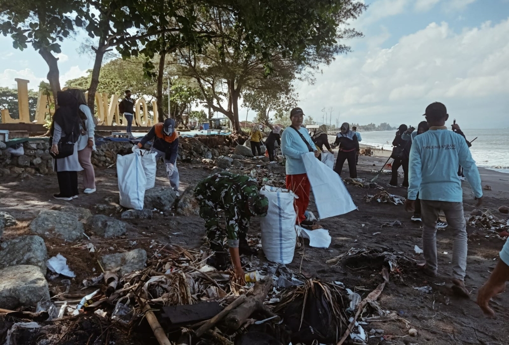 Sejak pagi, suasana di kawasan pesisir pantai dipenuhi semangat kebersamaan. Seluruh peserta tampak antusias memungut sampah plastik, ranting pohon, hingga limbah rumah tangga yang terbawa ombak. Suara canda tawa berpadu dengan deru ombak, mencerminkan semangat gotong royong yang menjadi ciri khas masyarakat Indonesia.