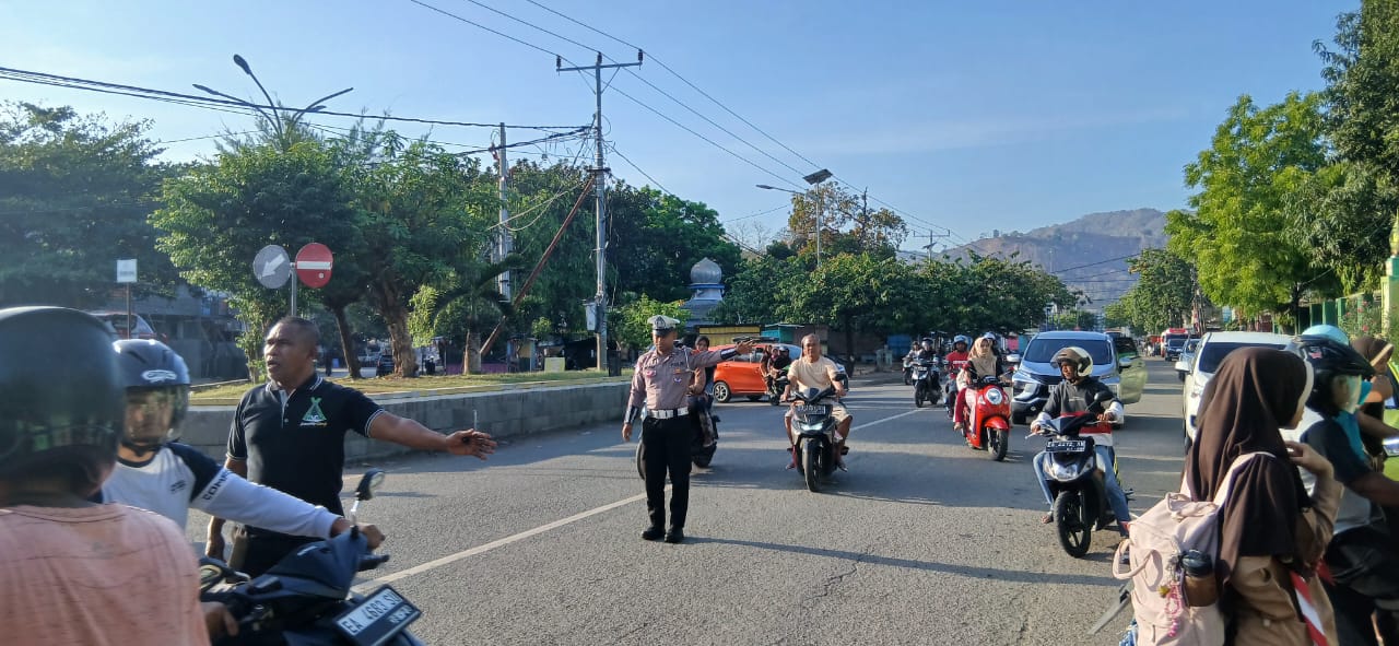 Kota Bima, NTB (18 Oktober 2025) – Guna menciptakan situasi lalu lintas yang aman dan lancar di pagi hari, Polsek Rasanae Barat Polres Bima Kota melaksanakan kegiatan Rawan Pagi pada Sabtu (18/10/2025) pukul 06.30 Wita, bertempat di depan MTSN I Kota Bima.