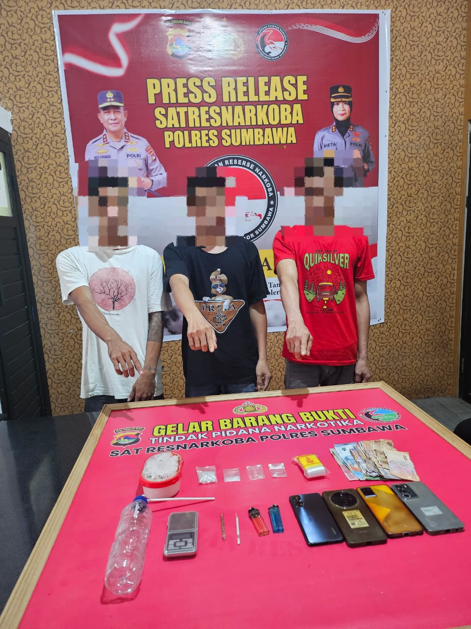 Sumbawa Besar, NTB – Satuan Reserse Narkoba (Sat Resnarkoba) Polres Sumbawa kembali menunjukkan komitmennya dalam memberantas peredaran narkotika. Operasi kali ini menyasar wilayah Kecamatan Buer dan berhasil mengamankan tiga terduga pelaku.