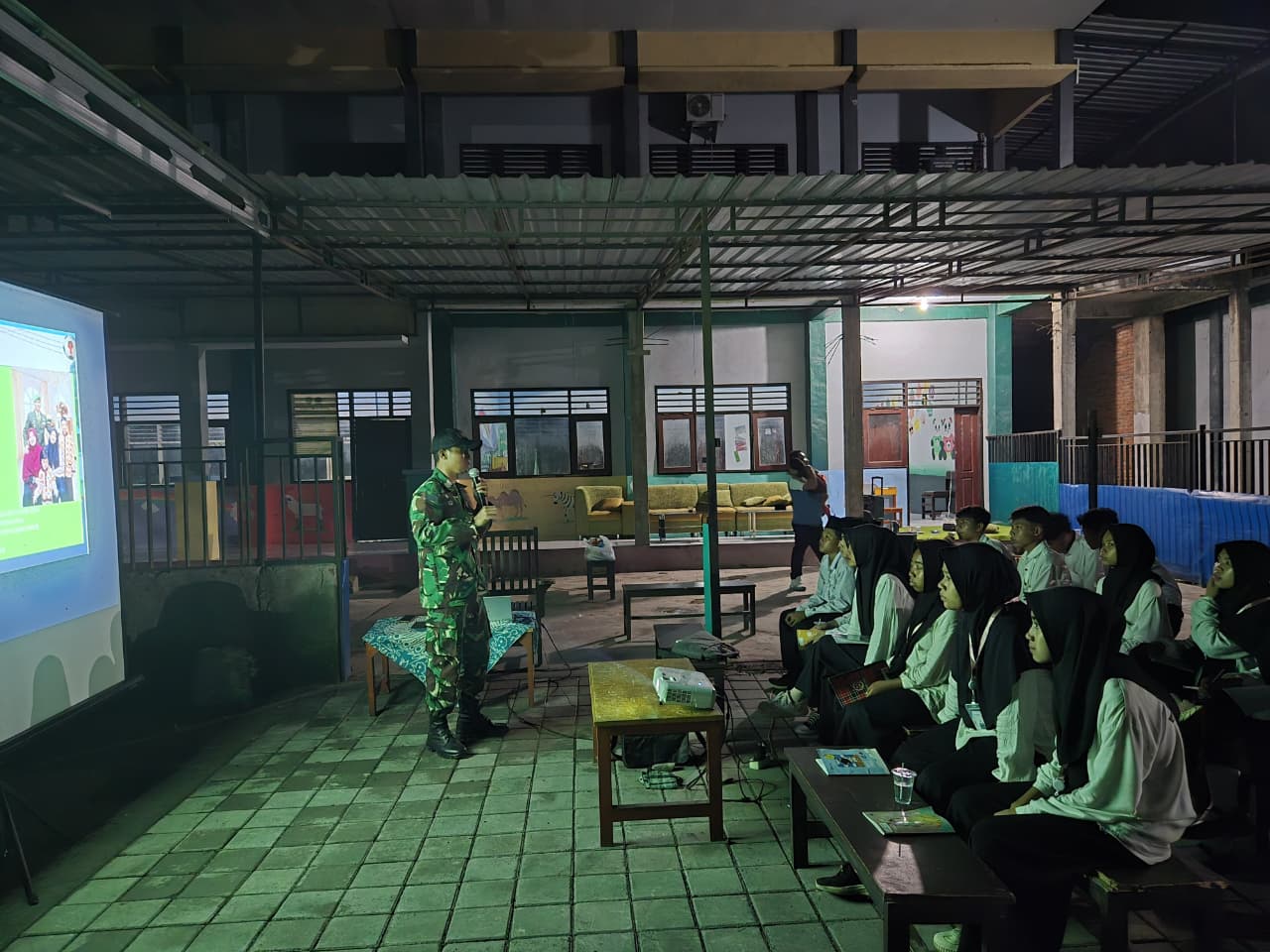 Lombok Barat, NTB – Dalam suasana penuh semangat dan keakraban, Bintara Pembina Desa (Babinsa) Langko, Komando Rayon Militer (Koramil) 1606-08/Narmada, Sertu Muhammad Faesal, memberikan materi Wawasan Kebangsaan (Wasbang) kepada para pengurus Organisasi Siswa Intra Madrasah (OSIM) di Yayasan Pondok Pesantren Assulamy, Desa Langko, Kecamatan Lingsar, Sabtu malam (8/11/2025).