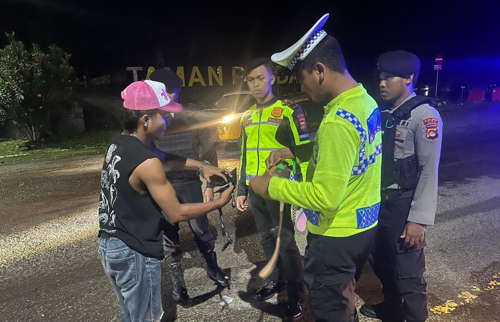 Petugas juga menyambangi beberapa Remaja yang masih beraktifitas di malam hari dan sementara berkumpul di pinggiran jalan.dan melakukan pemeriksaan terhadap kendaraan hingga Penggeledahan badan.