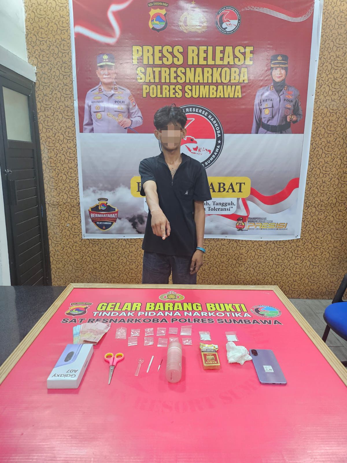 Sumbawa Besar, NTB – Satuan Reserse Narkoba (Sat Resnarkoba) Polres Sumbawa berhasil menangkap satu Target Operasi (TO) kasus narkotika dalam pelaksanaan Operasi Antik Rinjani Tahun 2025. Terduga pelaku, berinisial S, diamankan bersama barang bukti belasan paket sabu yang disembunyikan di kamar kosnya.