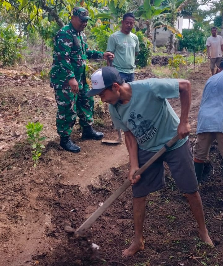 “Ini bukan sekadar memperbaiki jalan, tapi memperbaiki harapan warga agar kehidupan mereka semakin mudah dan aman,” ujar Serda Budianto sambil mencangkul tanah.