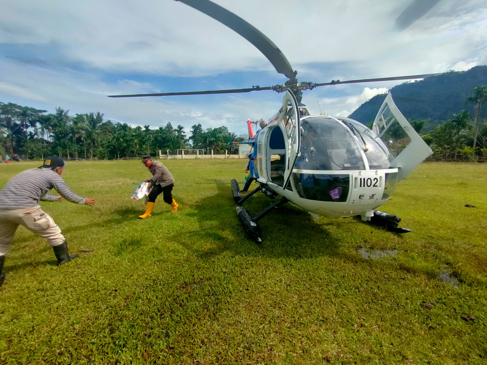 “Polri hadir untuk memastikan bantuan kemanusiaan dapat segera diterima oleh masyarakat yang membutuhkan. Melalui dukungan sarana udara, pendistribusian logistik dapat dilakukan secara cepat dan tepat sasaran,” ujar Kombes Pol Erdi A. Chaniago.