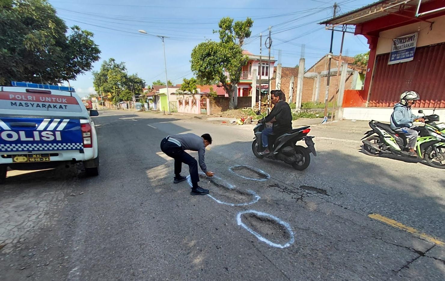 Dalam kegiatan tersebut, petugas menemukan sejumlah titik jalan berlubang yang berpotensi menimbulkan kecelakaan lalu lintas, serta adanya pekerjaan perbaikan selokan yang menggunakan sebagian badan jalan. Untuk meminimalkan risiko, Satlantas Polres Dompu melakukan penandaan berupa lingkaran cat semprot pada lubang-lubang jalan agar mudah terlihat oleh pengendara.