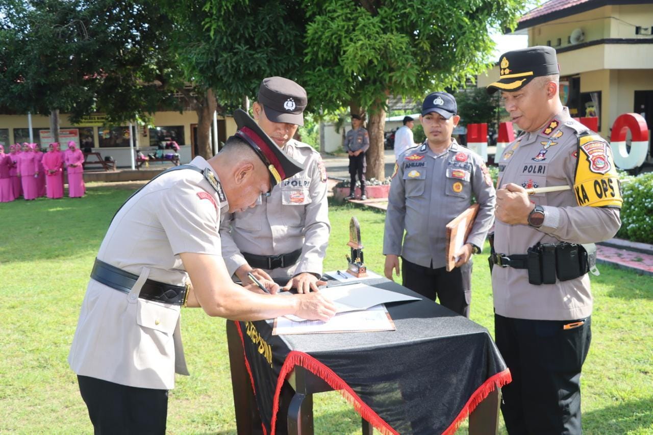 Kepolisan Resor Bima Polda NTB menggelar upacara serah terima dan pengambilan sumpah jabatan serta penandatanganan pakta Integritas lima Kapolsek dan Satu Kabag.