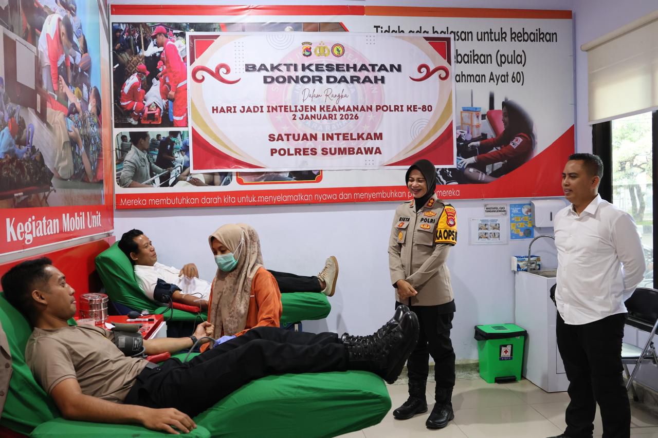 Sumbawa Besar, NTB — Menjelang peringatan Hari Jadi Intelijen Keamanan (Intelkam) Polri ke-80 yang jatuh pada tanggal 2 Januari mendatang, jajaran Sat Intelkam Polres Sumbawa menggelar aksi kemanusiaan berupa Bakti Kesehatan Donor Darah. Kegiatan ini berlangsung khidmat di Kantor Palang Merah Indonesia (PMI) Kabupaten Sumbawa, Senin pagi (29/12/2025).