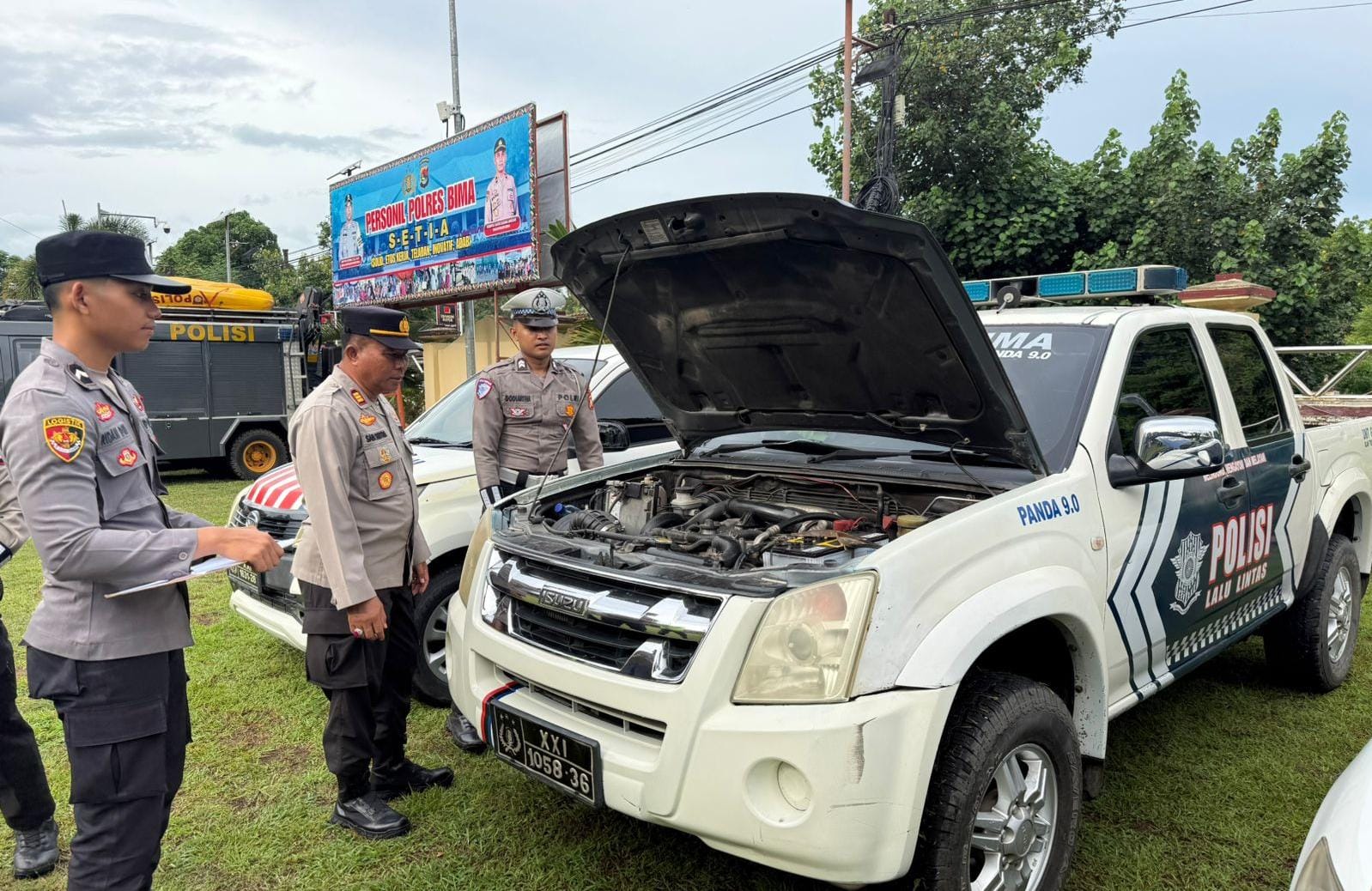Memastikan kesiapan operasional dan kepatuhan terhadap prosedur keamanan di jajaran Kepolisian, Bag Log Polres Bima Polda NTB menggelar pemeriksaan Randis dan senjata api dinas.