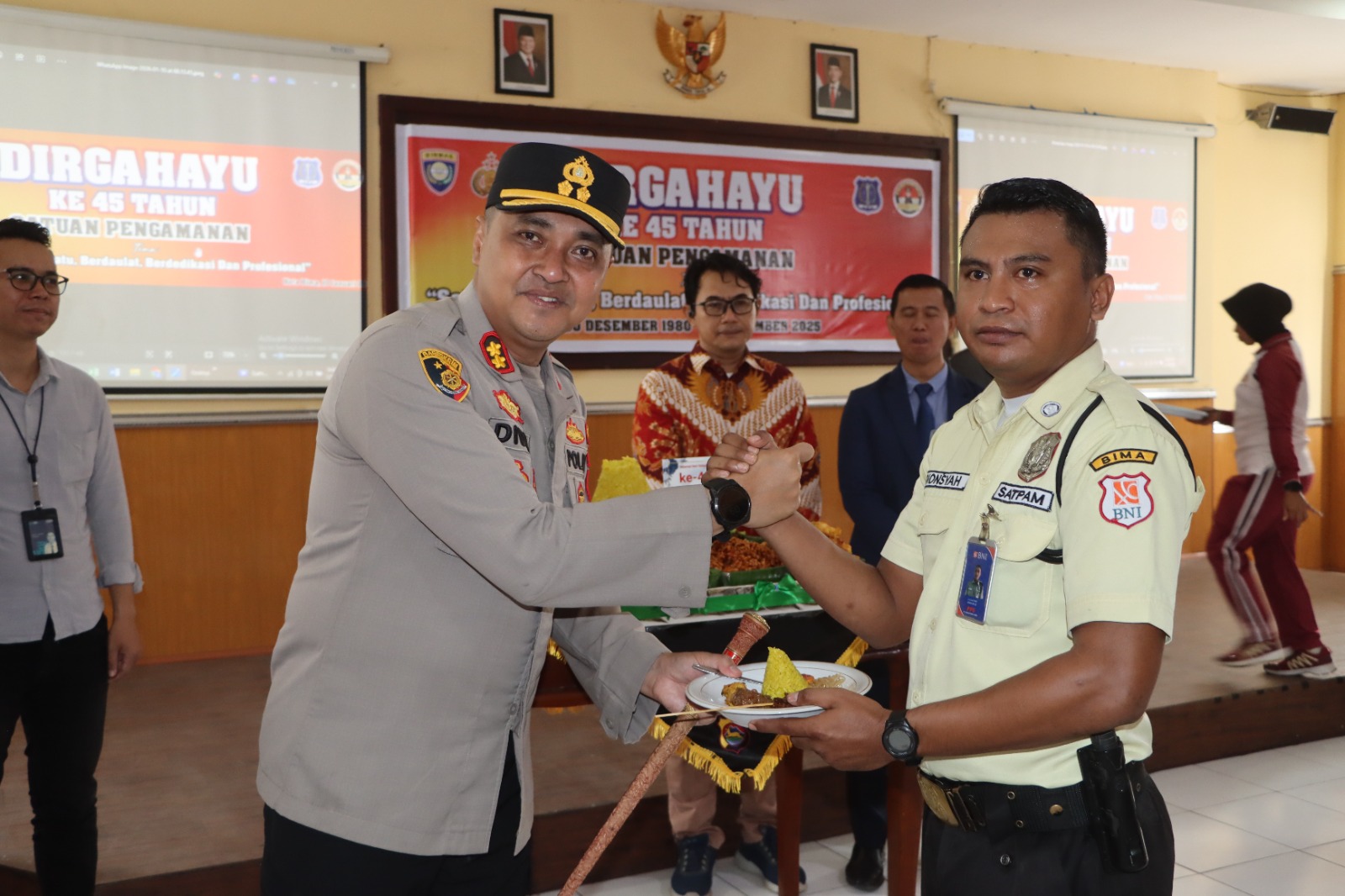 Upacara HUT Satpam ke-45 ini diikuti oleh personel Sat Binmas Polres Bima Kota serta perwakilan Satuan Pengamanan dari berbagai instansi dan perusahaan di wilayah hukum Polres Bima Kota. Kegiatan tersebut juga dihadiri oleh para undangan dari unsur pimpinan instansi terkait.