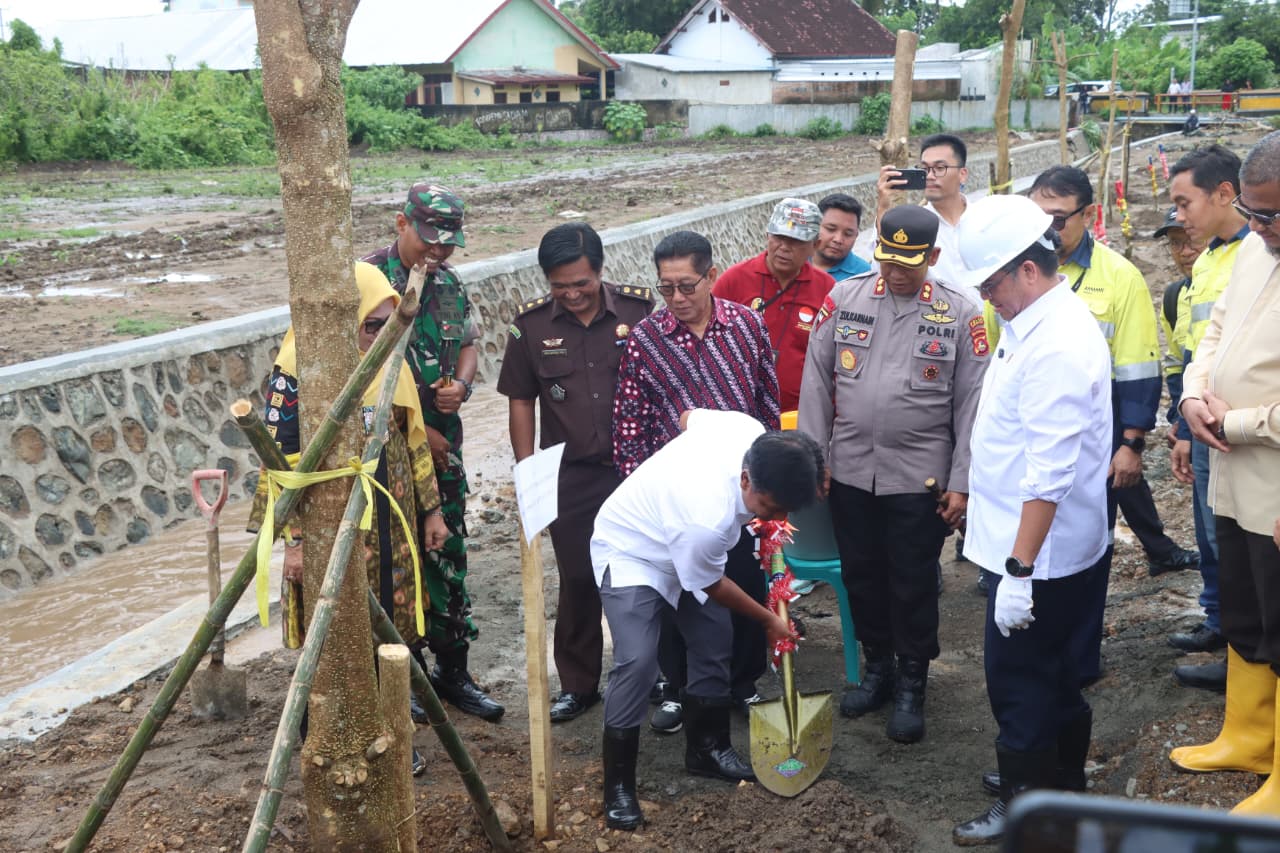 Kegiatan dilanjutkan dengan pembacaan doa, kemudian prosesi Peletakan Batu Pertama oleh Menteri Ketenagakerjaan RI bersama Bupati Sumbawa Barat dan Ketua DPRD Kabupaten Sumbawa Barat, serta penanaman pohon bersama unsur Forkopimda.