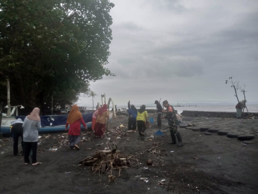 Sejak pagi hari, puluhan personel Babinsa, aparat kelurahan, dan masyarakat bahu-membahu menyisir garis pantai.