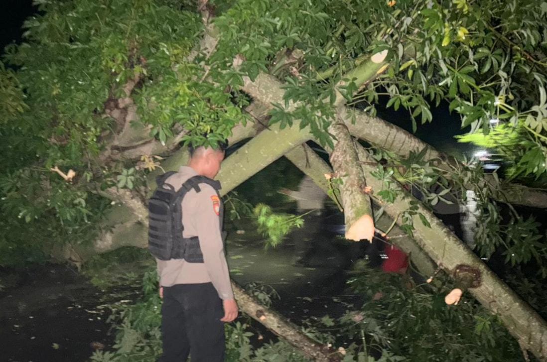 Kanit Pamapta 3 Ipda Maruf bersama Anggota ton I Dalmas Sat-Samapta Polres Bima Polres Bima Polda NTB yang mendapatkan Informasi tersebut langsung bergerak menuju TKP.tiba di TKP personel berusaha untuk mengevakuasi pohon tumbang.